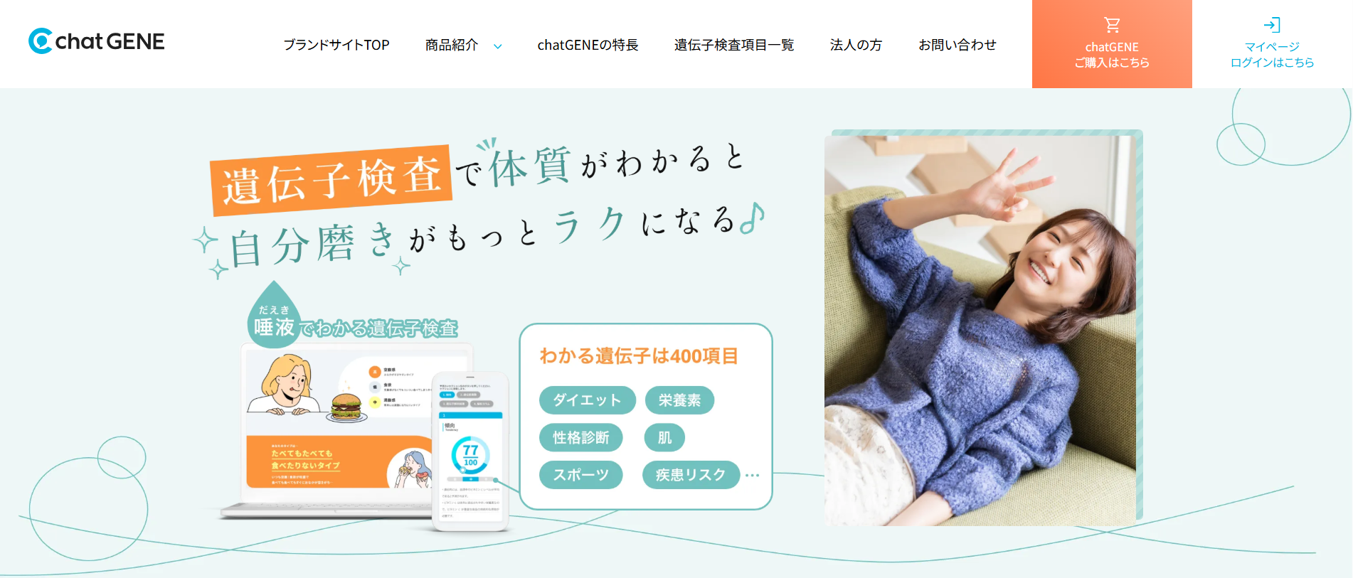 chatGENEは「価格」と「レポートの質」で差別化された遺伝子検査キットです。6,800円という手軽さで400項目もの情報を得られるため、遺伝子検査を気軽に始めたい人、日常のセルフケアを合理化したい人に特に向いています。まずは自分の遺伝的傾向を知ることが、より効果的で無駄の少ない健康・美容習慣への第一歩になります。