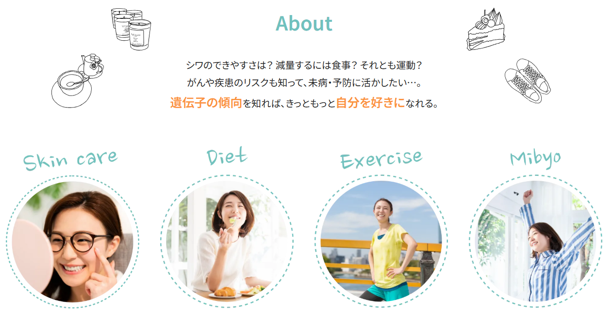 - 自分だけのスペシャルコンテンツ:複数の遺伝的傾向をまとめた個別ページで、例えばダイエットなら45,000パターンから導く“あなた向けの傾向”を提示します。